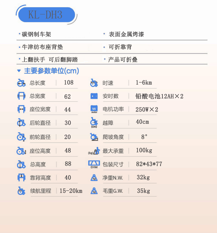 > KL-DH3電動輪椅