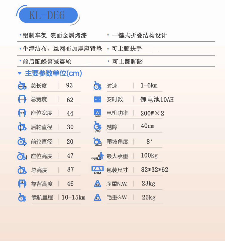 > KL-DE6電動輪椅