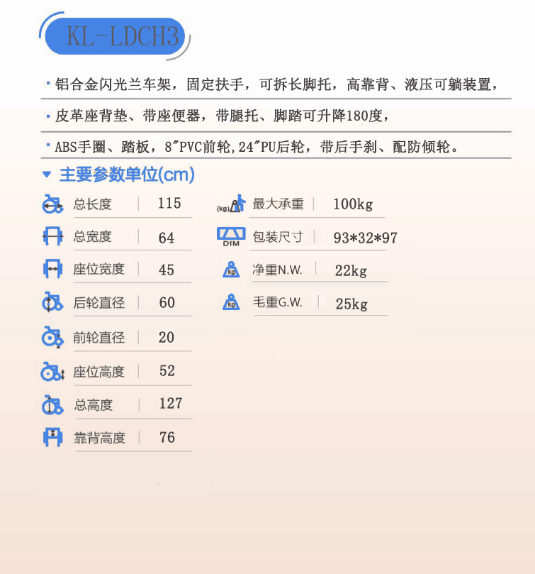 > KL-LDCH3高靠背輪椅