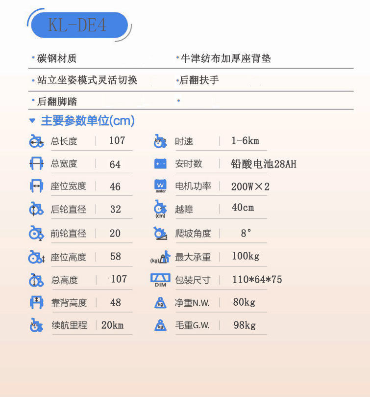 > KL-DE4電動輪椅