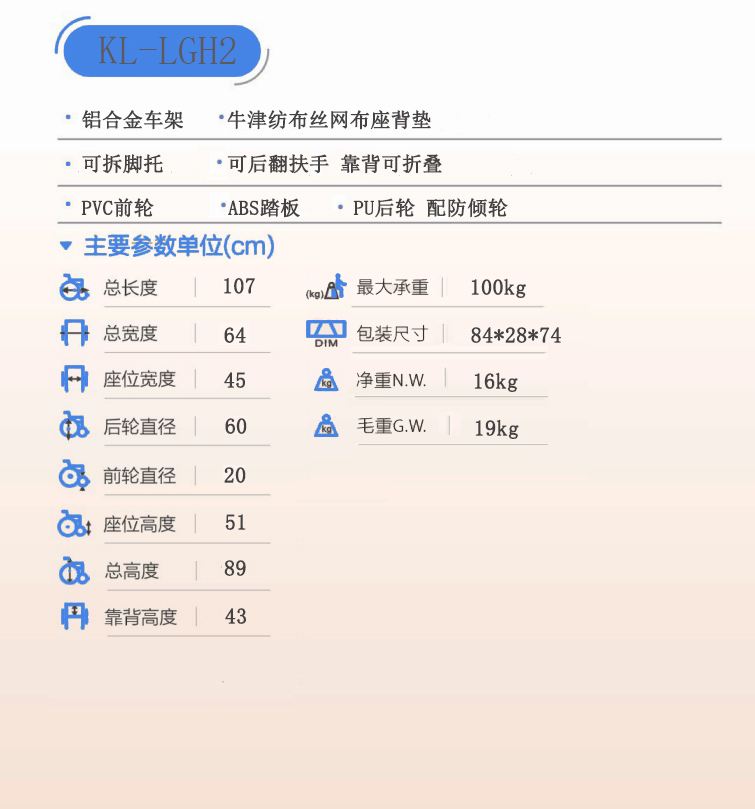 KL-LGH2功能型鋁合金輪椅