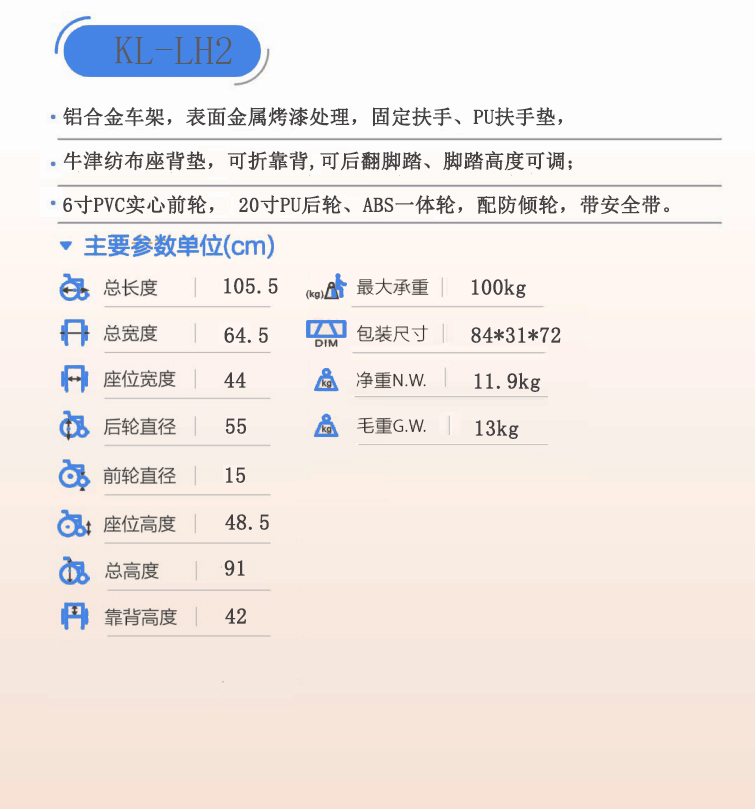 > KL-LH2護理型鋁合金輪椅