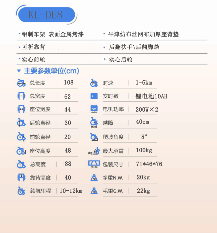 > KL-DE8電動輪椅